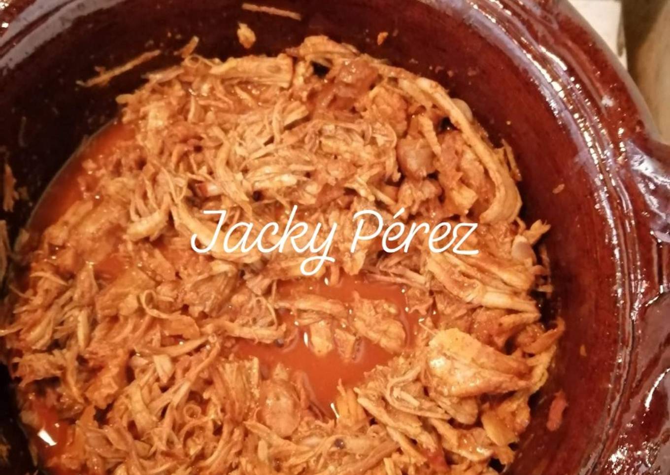 - Pasado este tiempo abrimos y con ayuda de un tenedor empezamos a desmenuzar la carne, rectificamos la sal y listo, a servirse con sus cebollitas desflemadas con habanero 😉👌