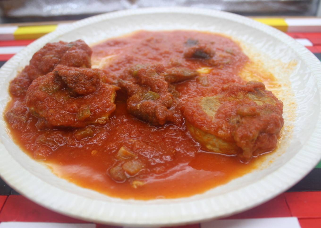 - Cuando el tomate comience a burbujear añadimos los medallones de solomillo, bajamos el fuego a un tercio de potencia, tapamos la sartén, añadimos la ramita de hierbabuena, la cucharadita de azúcar y dejamos cocinarse hasta que el solomillo este tierno y el tomate se espese, alrededor de 90 minutos.