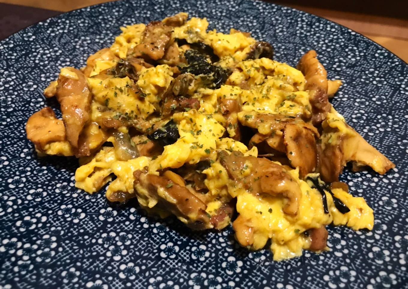 Revuelto de setas silvestres con bacon, cebolla y trufa πππ