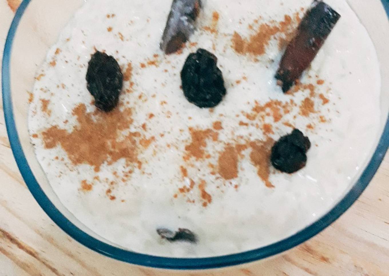 - Está muy bueno arroz con leche pero salió un poco moreno por chancaca y agregar pasas de uvas canela en polvo y el palito de canela y poner a la refrigerado y disfrutar como postre está muy bueno.