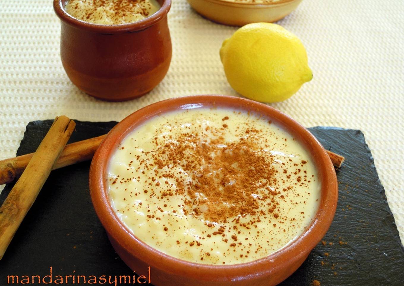 - Retira la canela y la corteza de limón, reparte el arroz en recipientes individuales y deja que se enfríe. Espolvorea con canela molida. Guarda en la nevera para que esté bien fresquito.