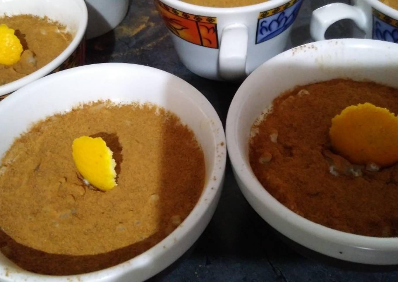 - Deja enfriar y cubre con suficiente canela en polvo, coloca una pequeña cáscara de naranja o de limón para decorar. Mete al refrigerador.