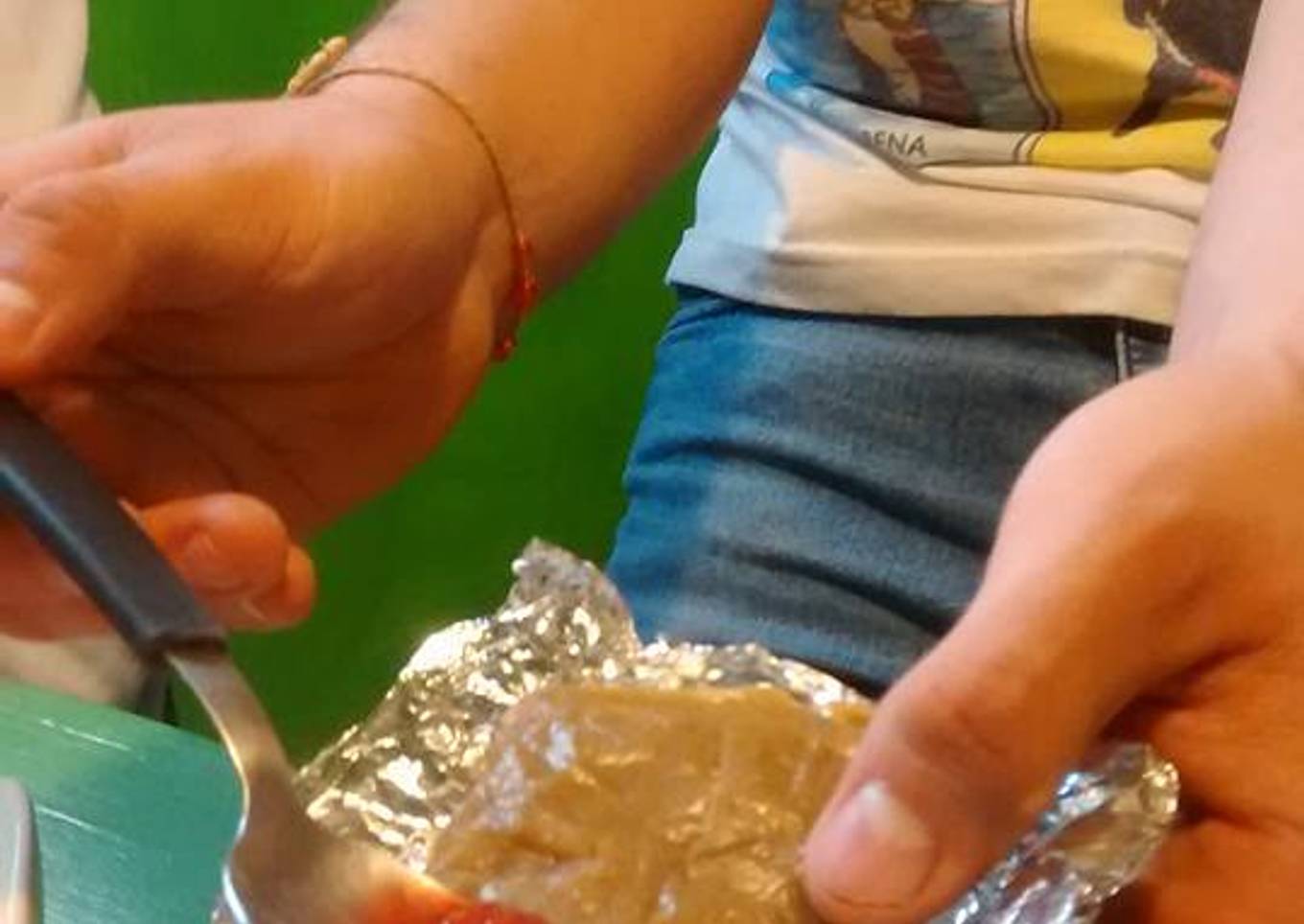 - Manera de hacer los tamales : Tomar una hojita de aluminio y por el lado brillante embarrar masa en el centro, doblar un extremo o lado, luego encimar el otro, a continuación doblar los extremos para cerrar en forma de cuadros o rectángulos, presionar para que queden planitos. Acomodar en la vaporera y cocer por una hora. Apagar, reposar y servir con atole blanco de maíz.