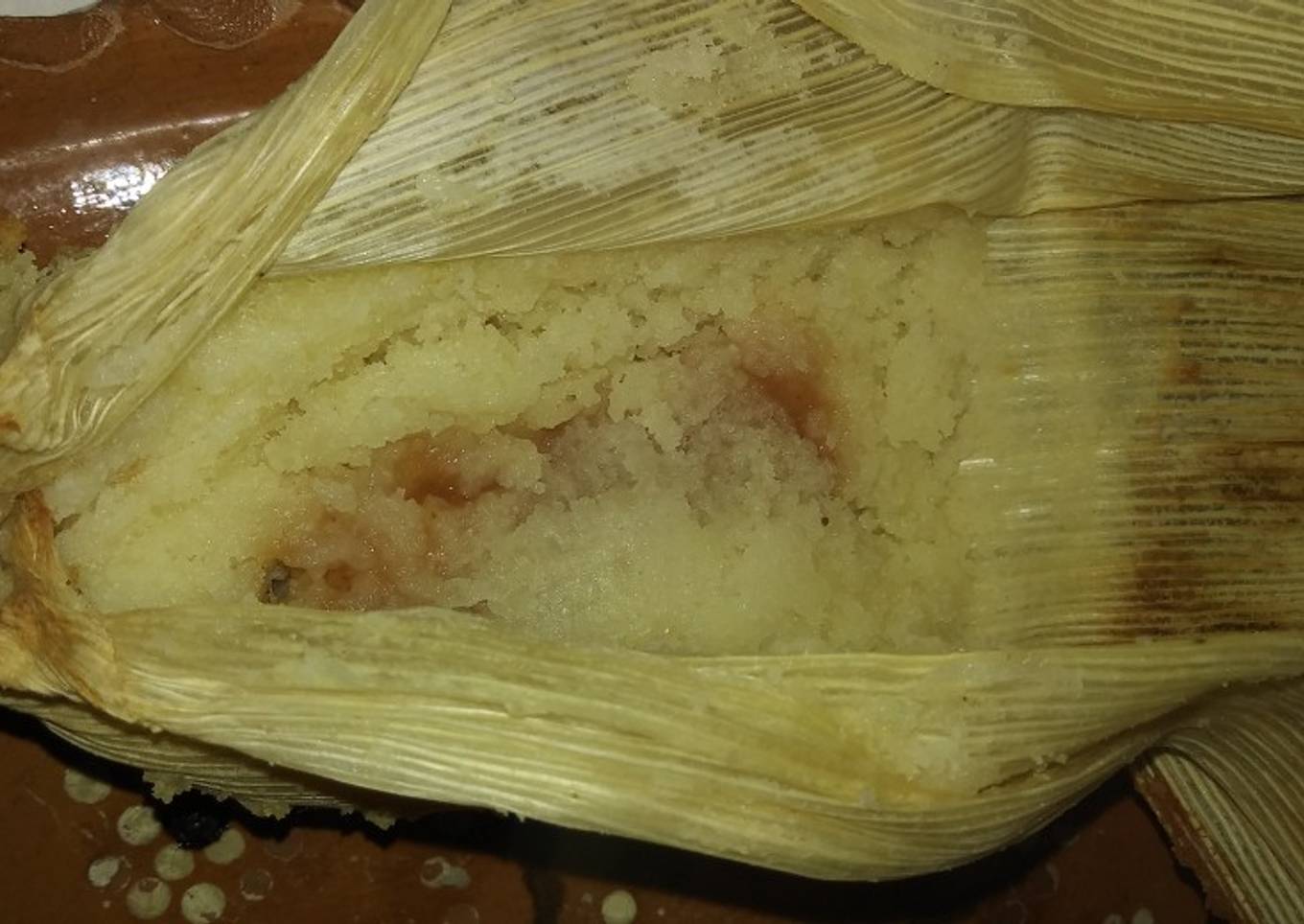 - Coloca una cucharada de la mezcla en cada hoja de tamal y añade una tira de ate. Dobla y coloca en una vaporera. Cocina por 45 min. O hasta que el tamal se desprenda de la hoja. Sugiero que los coloques paraditos de lo contrario se puede desbordar la masa.