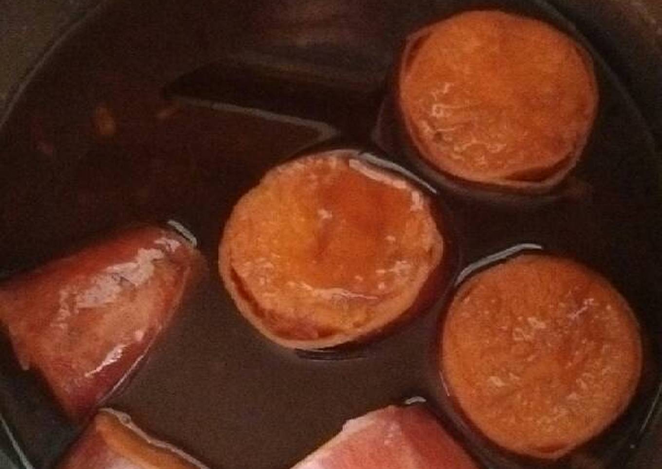 Ingredients and spices that need to be Prepare to make Camote en salsa de piloncillo: