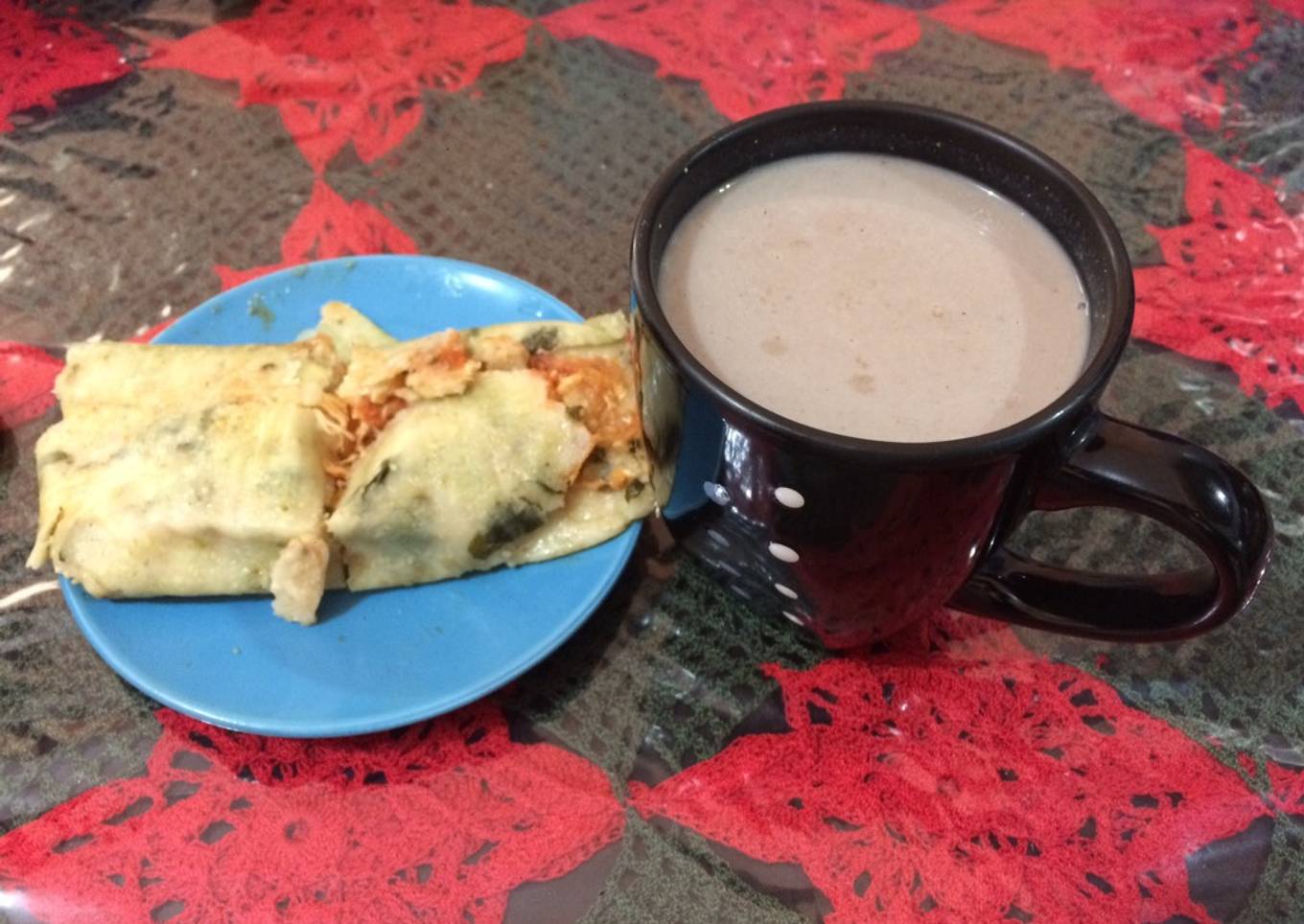 - Apagamos y servimos, dejamos que enfríe un poco, lo podemos acompañar con lo que más les guste, lo acompañe con un tamal típico de chispas, uno de Chi piñón con pollo