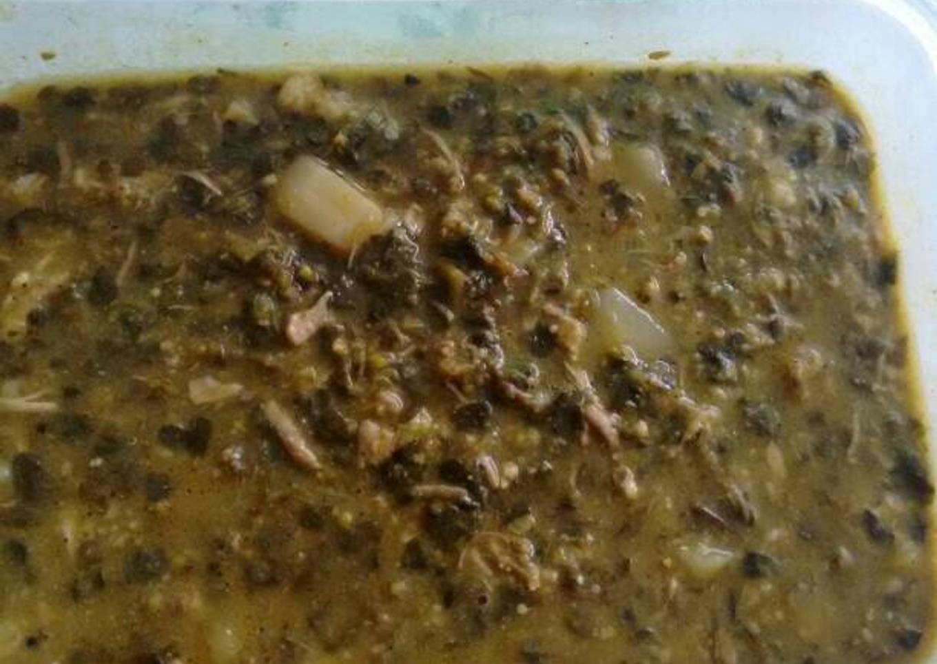 - Transcurrido el tiempo de cocción del codillo saca dos tazas del caldo y lleva a la licuadora junto con los tomates verdes partidos, los chiles, ajos, cebolla y las hojas santa. Licúa muy bien agrega la sal, deja cocer agrega las patatas, agrega el codillo desmenuzado y casi para servir agrega el codillo. Deja guisar todo junto a fuego medio unos 5 minutos para que todos los sabores se mezclen y las patatas terminen de cocerse.