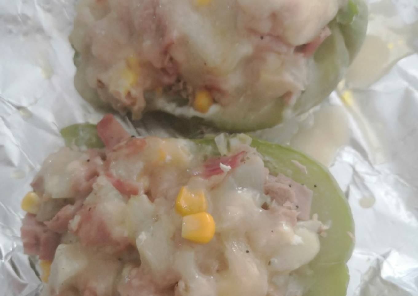 - Para el relleno: En un bowl echa los granos de elote, el atún, el jamón (picado en cudritos), el chayote picado, le pones la sal y pimienta al gusto y lo mezclas. En un sartén caliente le pones mantequilla y pones los ingredientes del bowl y sofríe.